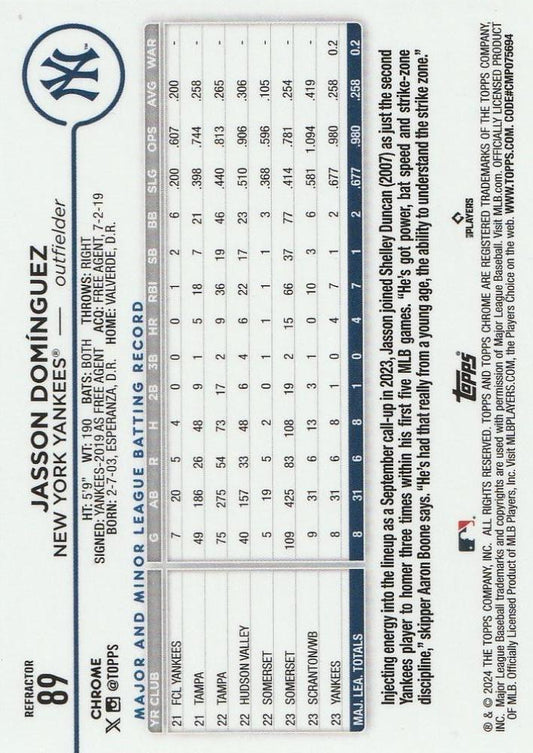 2024 Topps Chrome Refractor RC Jasson Domínguez #89 New York Yankees