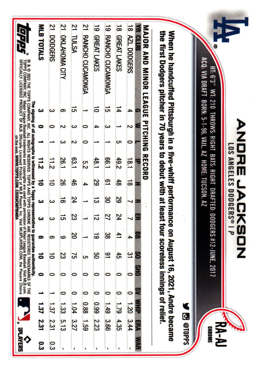 2022 Topps Chrome RC Autographs Andre Jackson #RC-AJ Los Angeles Dodgers