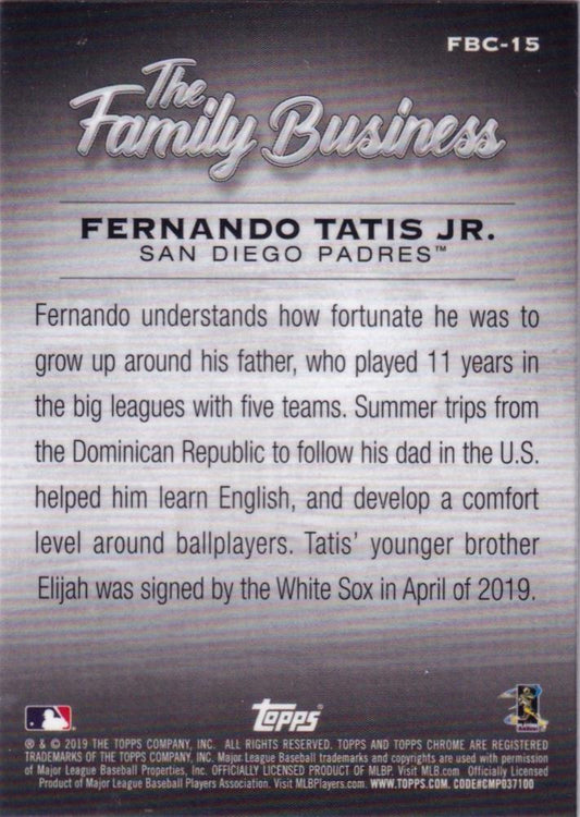 2019 Topps Chrome Update RC The Family Business Fernando Tatis Jr. RC #FB-15 San Diego Padres