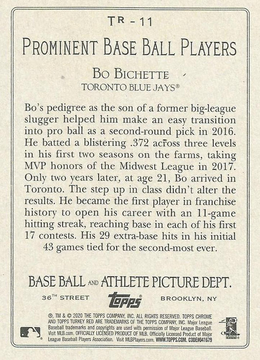 2020 Topps Update Bo Bichette RC #TR-11 Toronto Blue Jays