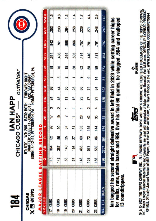 2024 Topps Chrome Negative Refractors Ian Happ #184 Chicago Cubs