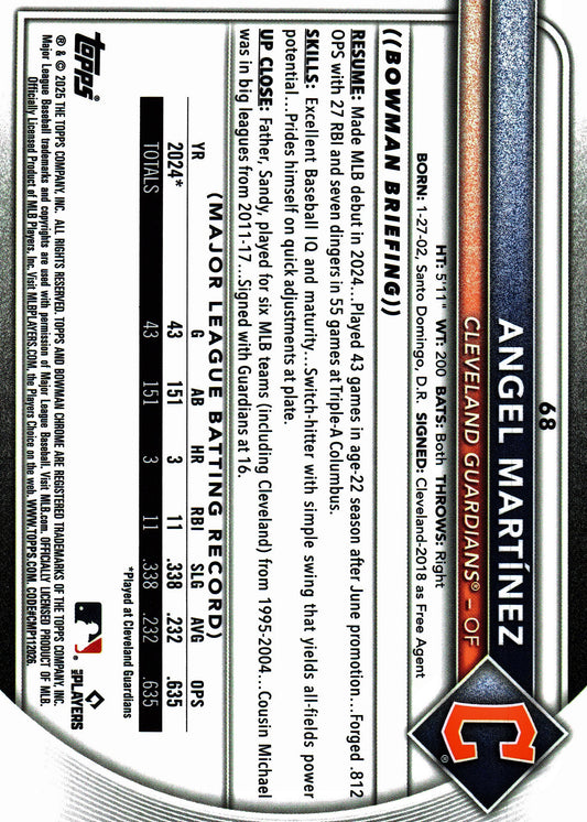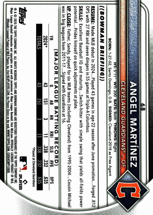 2025 Topps Bowman Chrome Green Wave /99 Angel Martinez #68 Cleveland Guardians