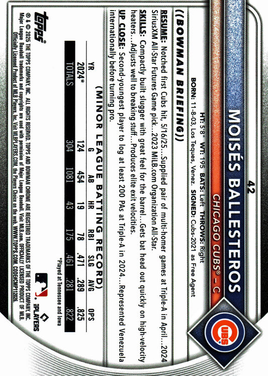 2025 Topps Bowman Chrome Green Geometric /99 Moises Ballesteros #42 Chicago Cubs