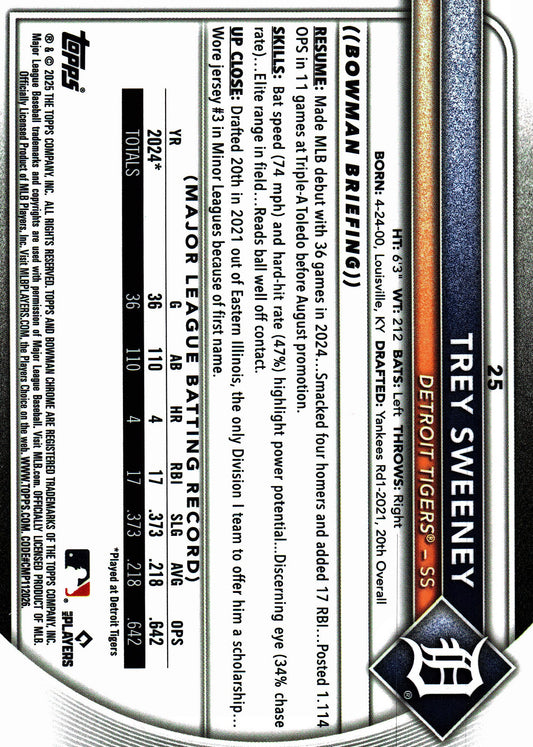 2025 Topps Bowman Chrome Purple Geometric /250 Trey Sweeney #25 Detroit Tigers