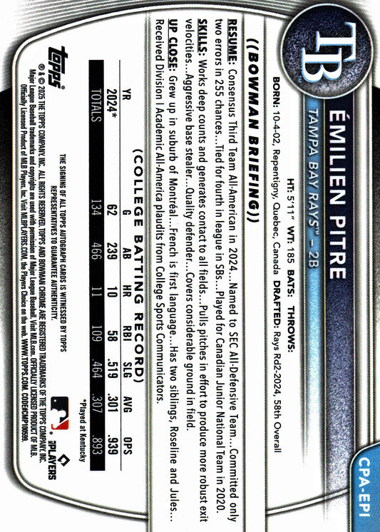 2025 Topps Bowman Chrome Prospect Autographs Émilien Pitre AU #CPA-EPI Tampa Bay Rays