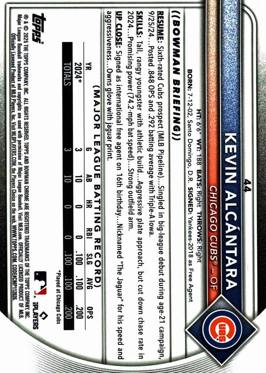 2025 Topps Bowman Chrome Red Rookie Logo Kevin Alcantara RC #44 Chicago Cubs