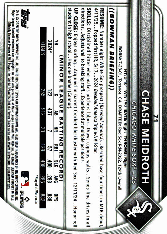 2025 Topps Bowman Chrome Purple Geometric /250 Chase Meidroth #71 Chicago White Sox