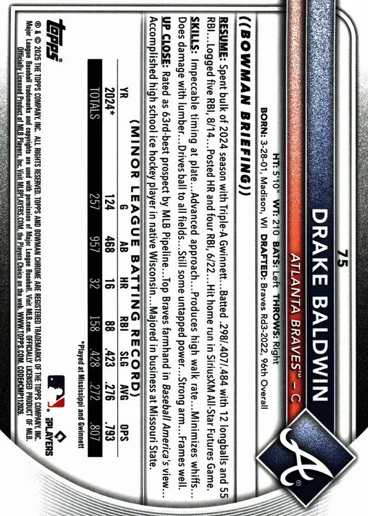 2025 Topps Bowman Chrome Fuchsia /299 Drake Baldwin #75 Atlanta Braves