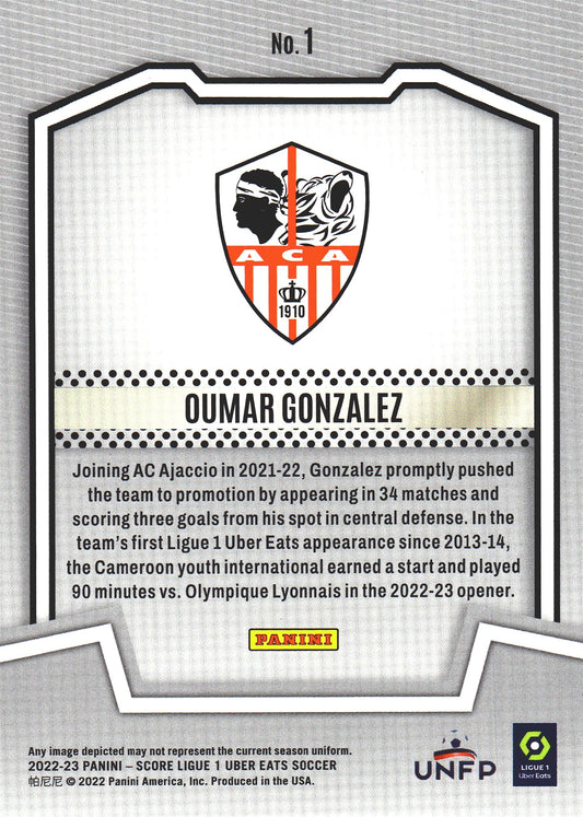 2022 Panini Score Ligue 1 Score Team Oumar Gonzalez RC #1 AC Ajaccio