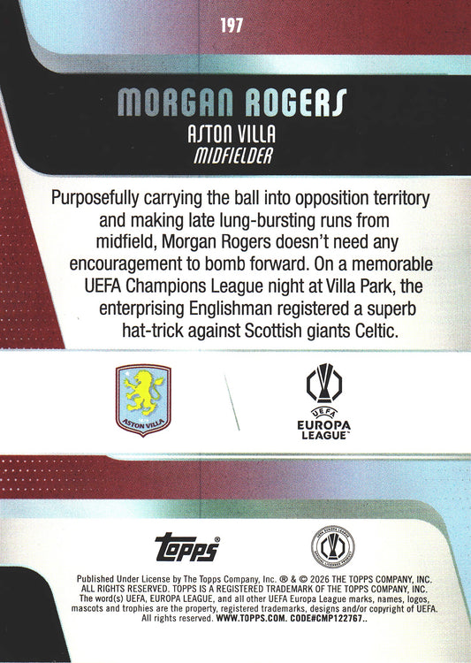 2025 Topps UCC Morgan Rogers #197 Aston Villa