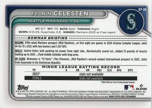 2024 Topps Bowman Chrome Prospects Felnin Celesten Seattle Mariners #BCP-210