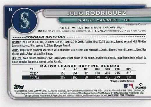 2024 Topps Bowman Chrome Julio rodriguez Seattle Mariners #95