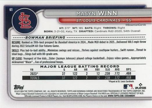 2024 Topps Bowman Chrome Masyn Winn RC St. Louis Cardinals #61