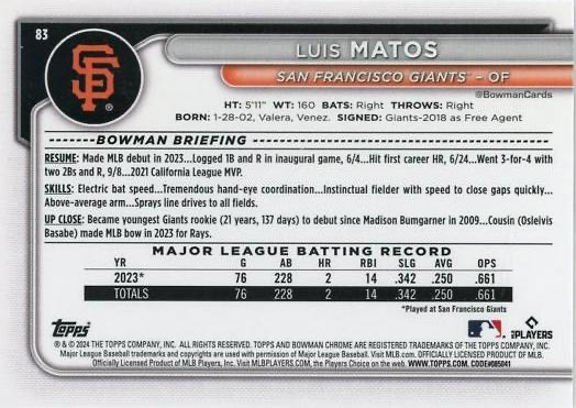 2024 Topps Bowman Chrome Luis Matos RC San Francisco Giants #83