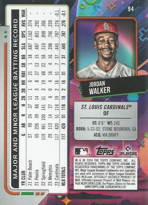 2024 Topps Cosmic Chrome Jordan Walker St. Louis Cardinals #94