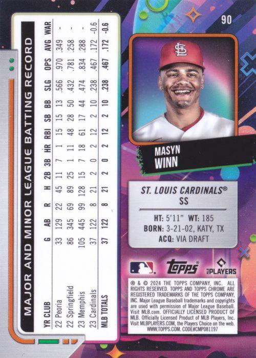 2024 Topps Cosmic Chrome Masyn Winn RC St. Louis Cardinals #90