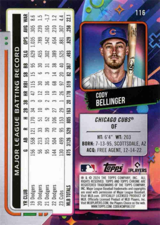 2024 Topps Cosmic Chrome Cody Bellinger Chicago Cubs #116