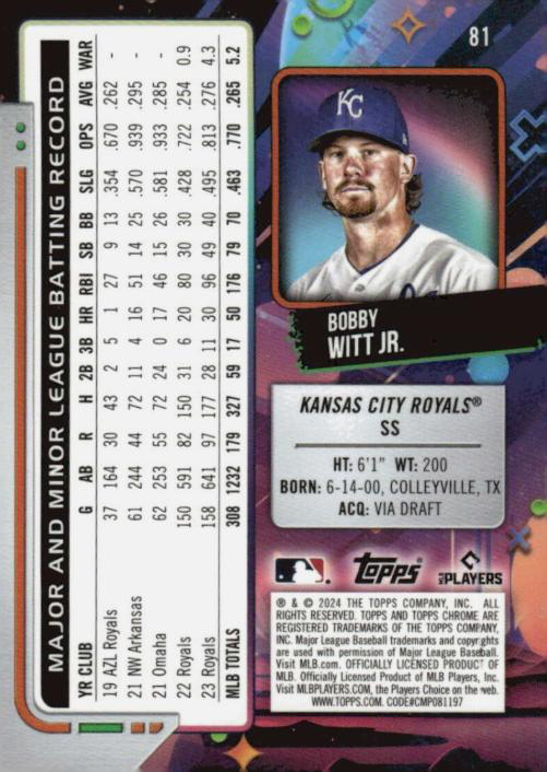 2024 Topps Cosmic Chrome Bobby Witt Jr. Kansas City Royals #81