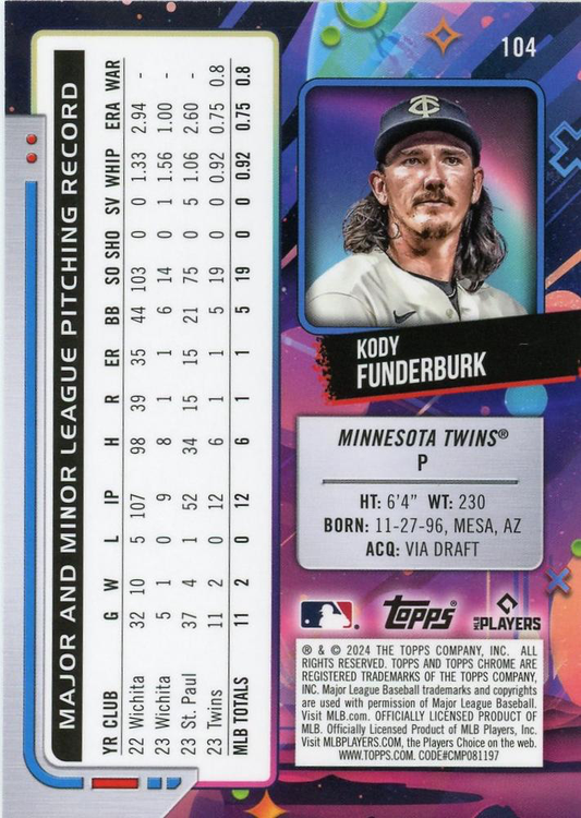 2024 Topps Cosmic Chrome Kody Funderburk RC Minnesota Twins #104
