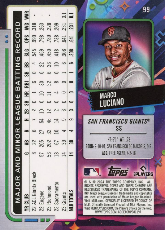 2024 Topps Cosmic Chrome Marco Luciano RC San Francisco Giants #99