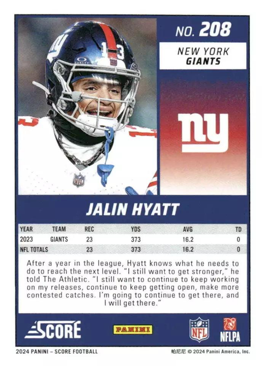 2024 Panini Score Football Jalin Hyatt New York Giants #208