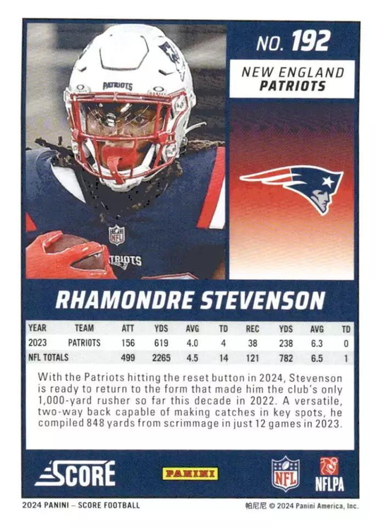 2024 Panini Score Football Rhamondre Stevenson New England Patriots #192