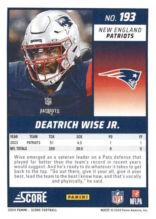 2024 Panini Score Football Deatrich Wise Jr. New England Patriots #193