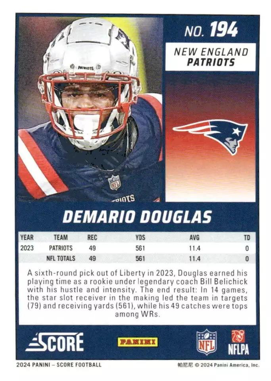 2024 Panini Score Football Demario Douglas New England Patriots #194
