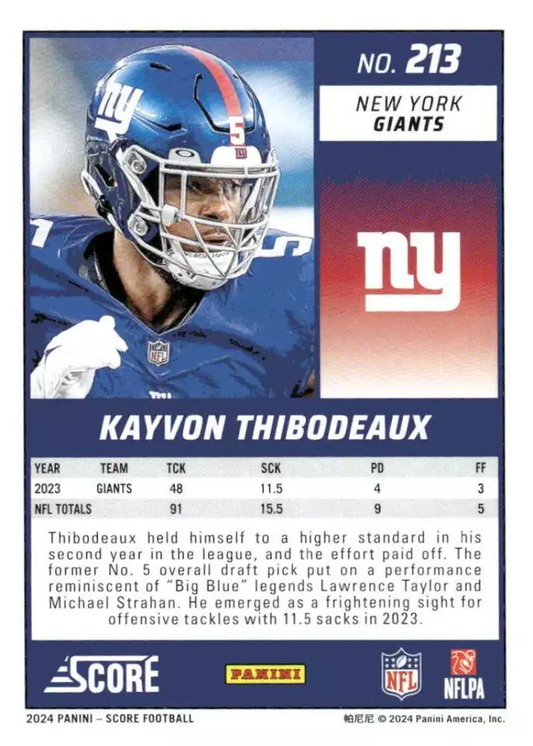 2024 Panini Score Football Kayvon Thibodeaux New York Giants #213