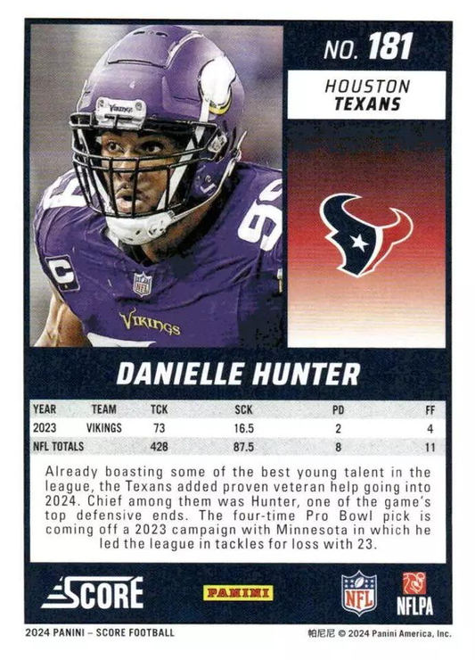 2024 Panini Score Football Danielle Hunter Houston Texans #181