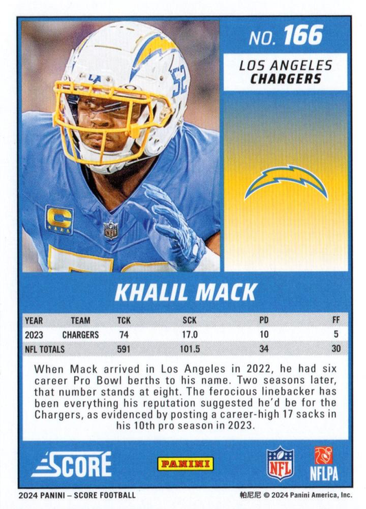 2024 Panini Score Football Khalil Mack Los Angeles Chargers #166