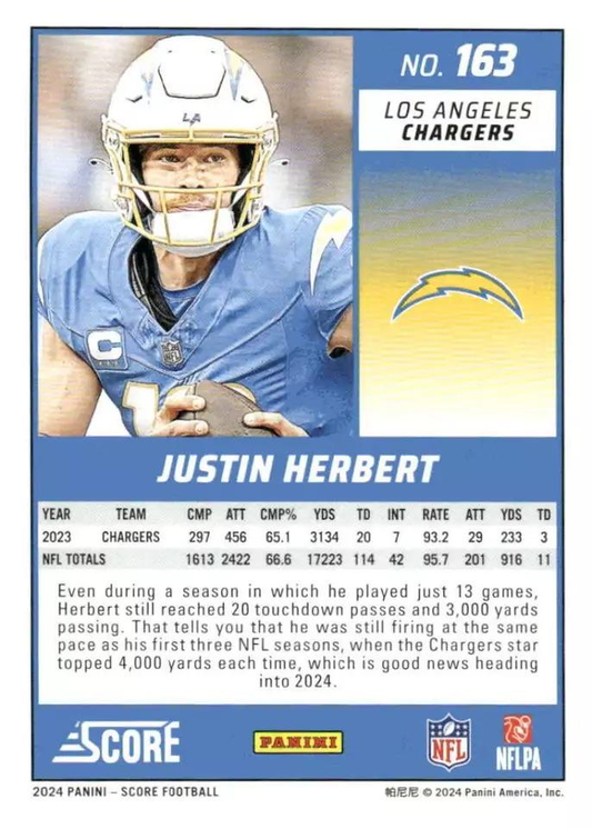 2024 Panini Score Football Justin Herbert Los Angeles Chargers #163