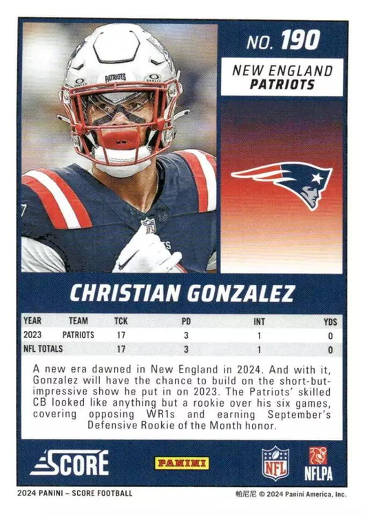 2024 Panini Score Football Christian Gonzalez New England Patriots #190