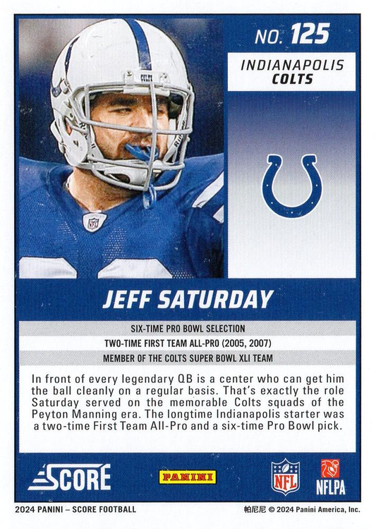 2024 Panini Score Football Jeff Saturday Indianapolis Colts #125