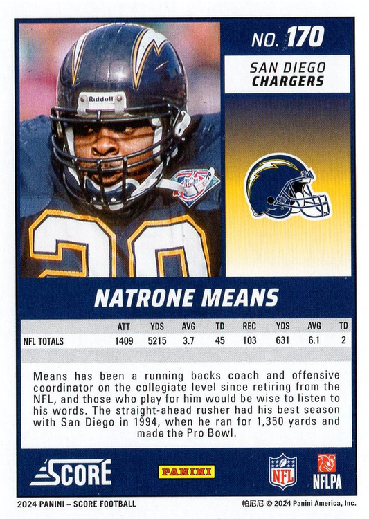 2024 Panini Score Football Natrone Means San Diego Chargers #170
