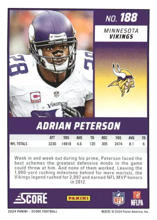2024 Panini Score Football Adrian Peterson Minnesota Vikings #188