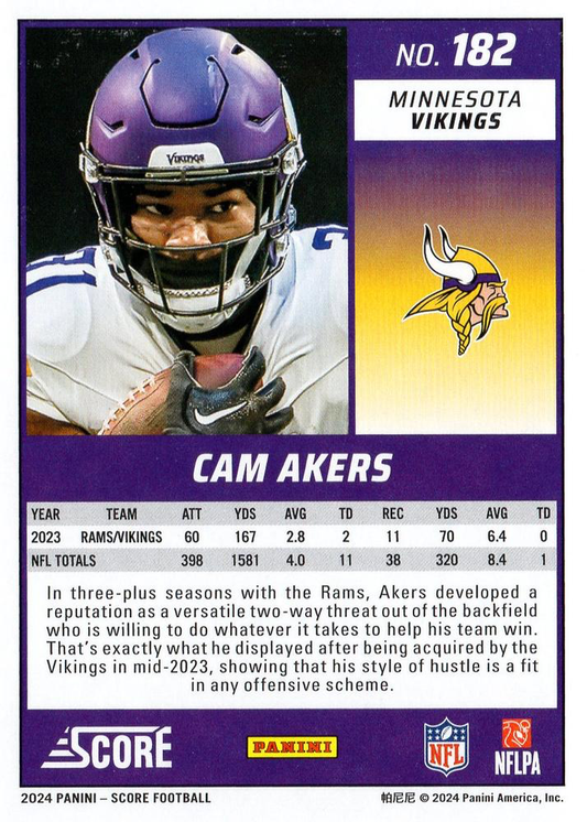 2024 Panini Score Football Cam Akers Minnesota Vikings #182