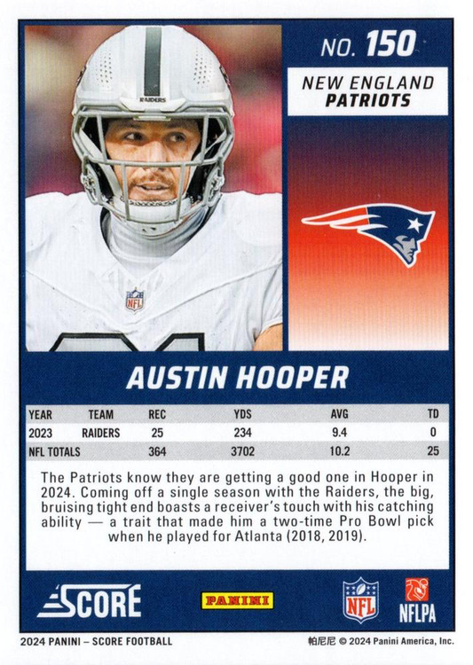 2024 Panini Score Football Austin Hooper New England Patriots #150