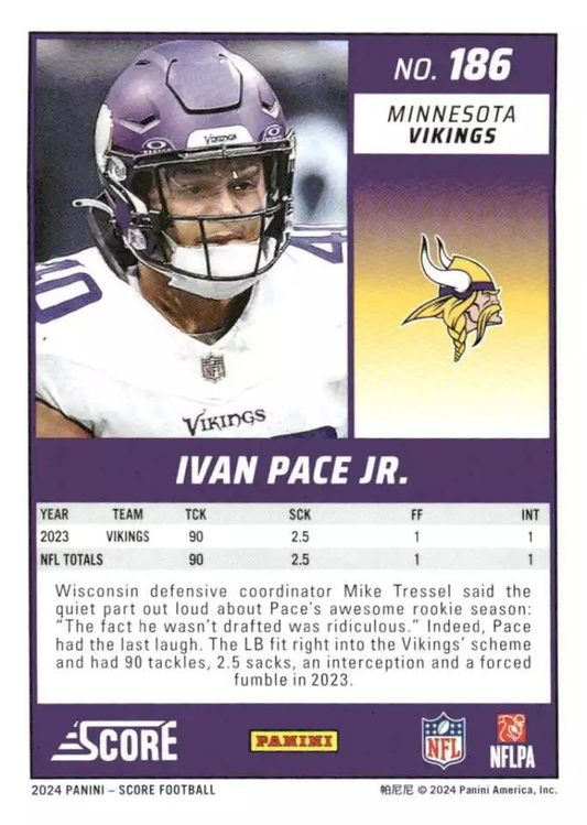 2024 Panini Score Football Ivan Pace Jr. Minnesota Vikings #186