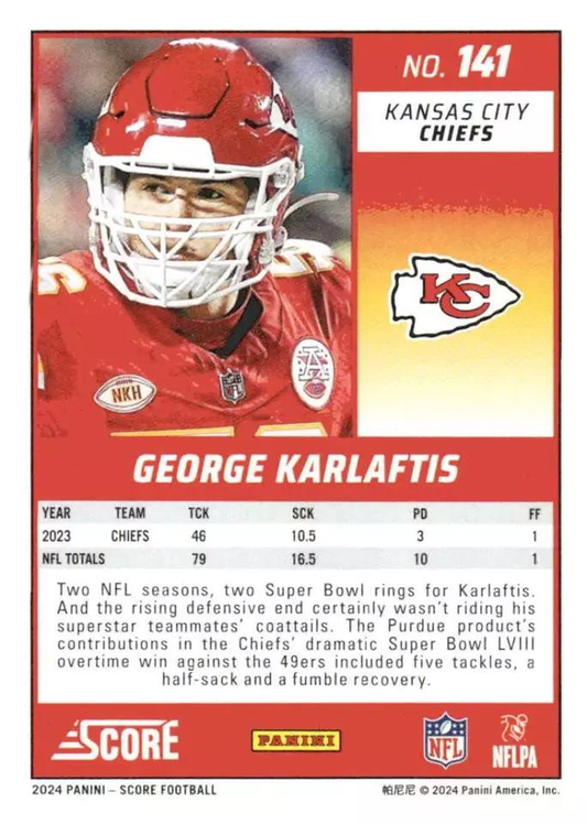 2024 Panini Score Football George Karlaftis Kansas City Chiefs #141