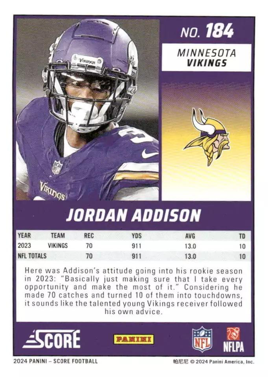 2024 Panini Score Football Jordan Addison Minnesota Vikings #184