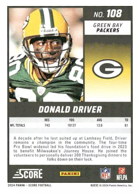 2024 Panini Score Football Donald Driver Green Bay Packers #108