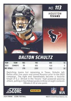2024 Panini Score Football Dalton Schultz Houston Texans #113