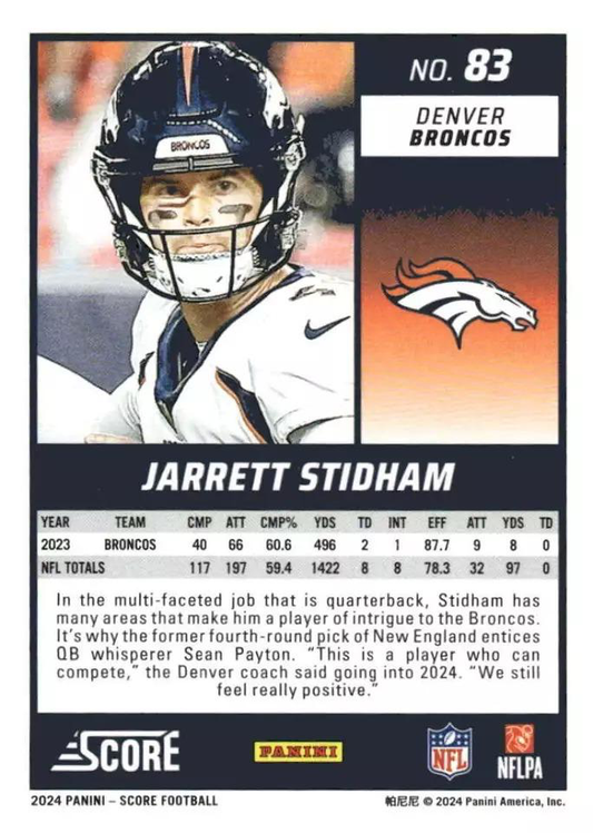2024 Panini Score Football Jarrett Stidham Denver Broncos #83