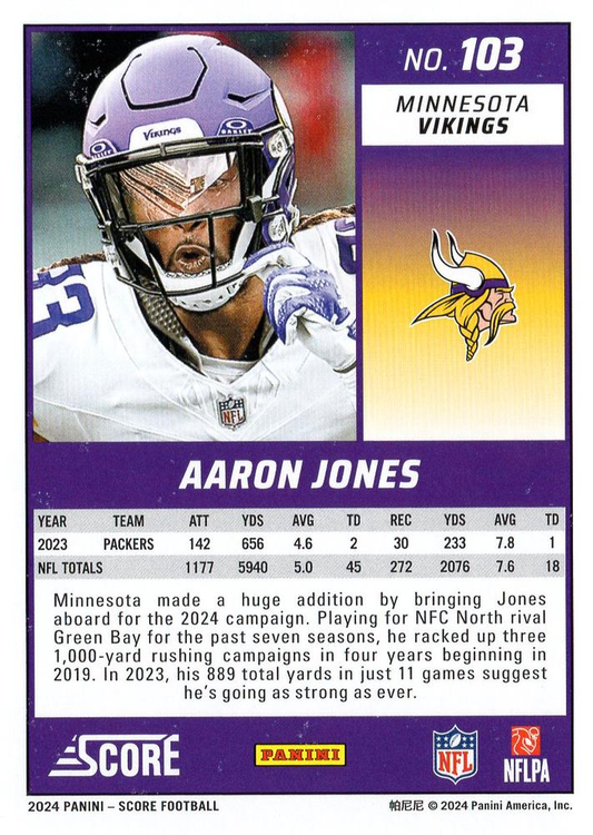 2024 Panini Score Football Aaron Jones Minnesota Vikings #103