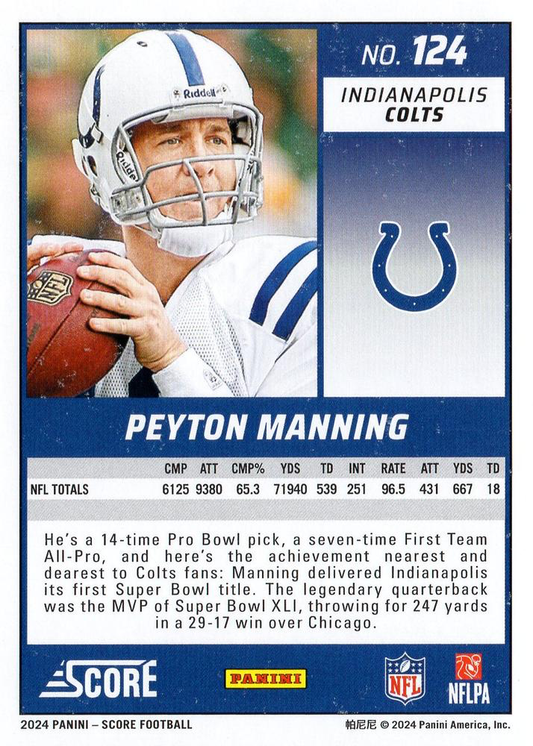 2024 Panini Score Football Peyton Manning Indianapolis Colts #124