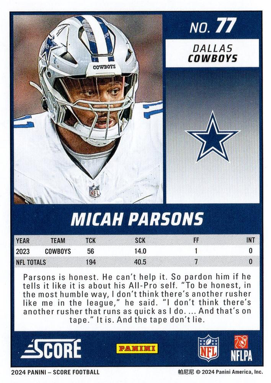 2024 Panini Score Football Micah Parsons Dallas Cowboys #77