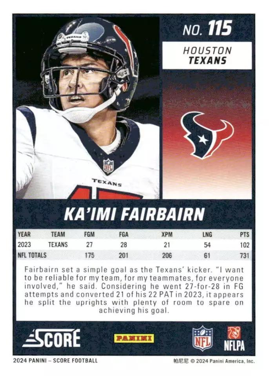 2024 Panini Score Football Ka'imi Fairbairn Houston Texans #115