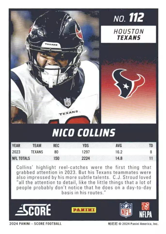 2024 Panini Score Football Nico Collins Houston Texans #112