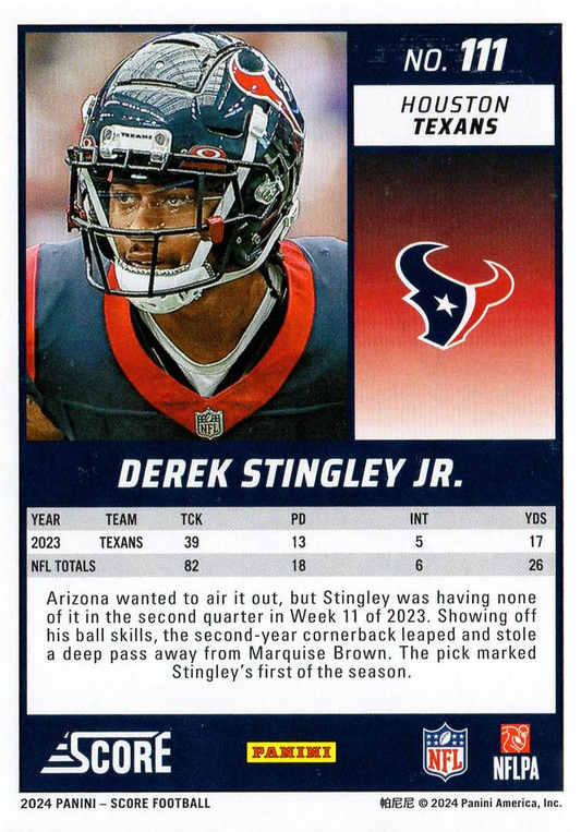 2024 Panini Score Football Derek Stingley Jr. Houston Texans #111